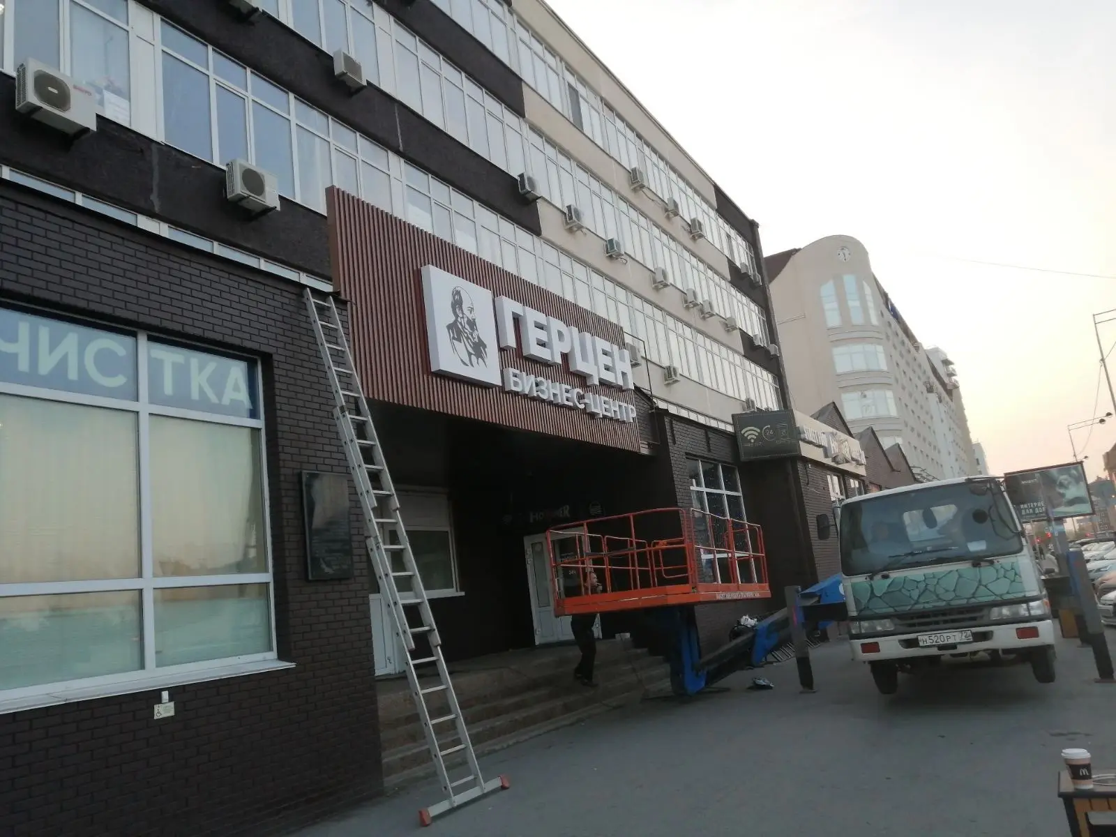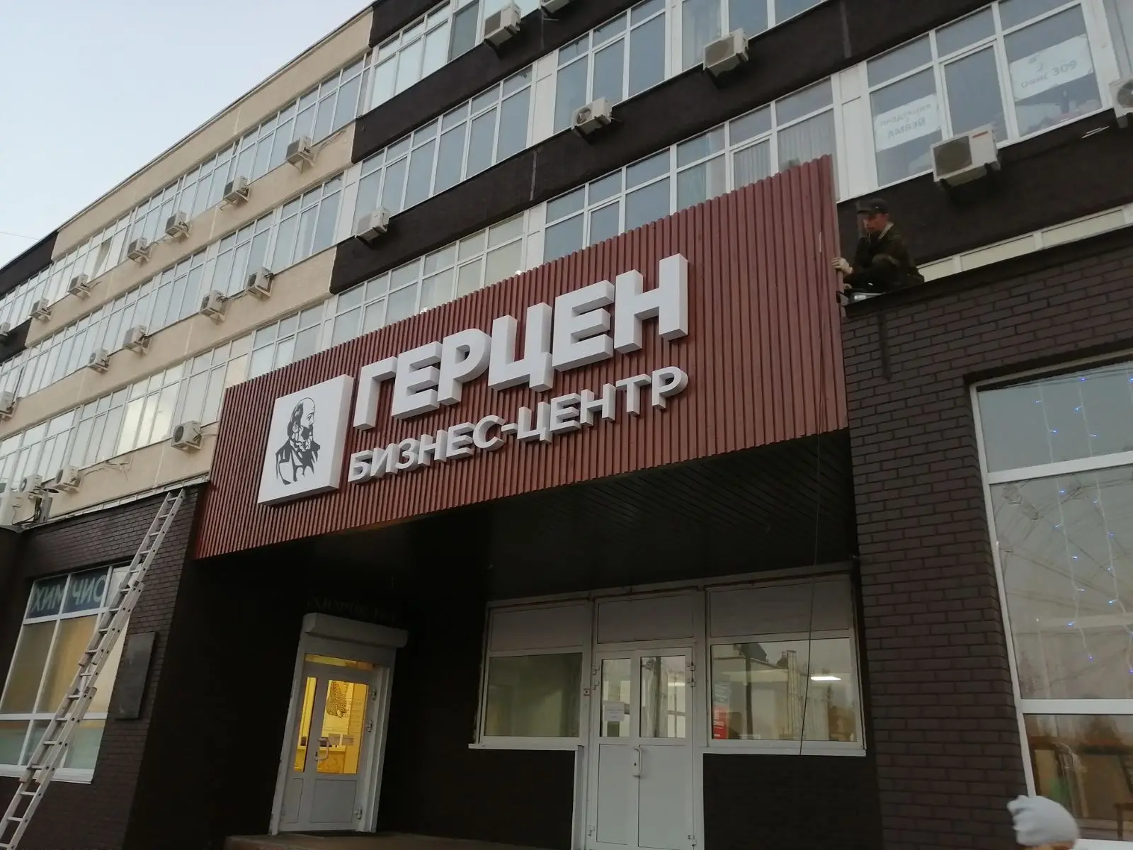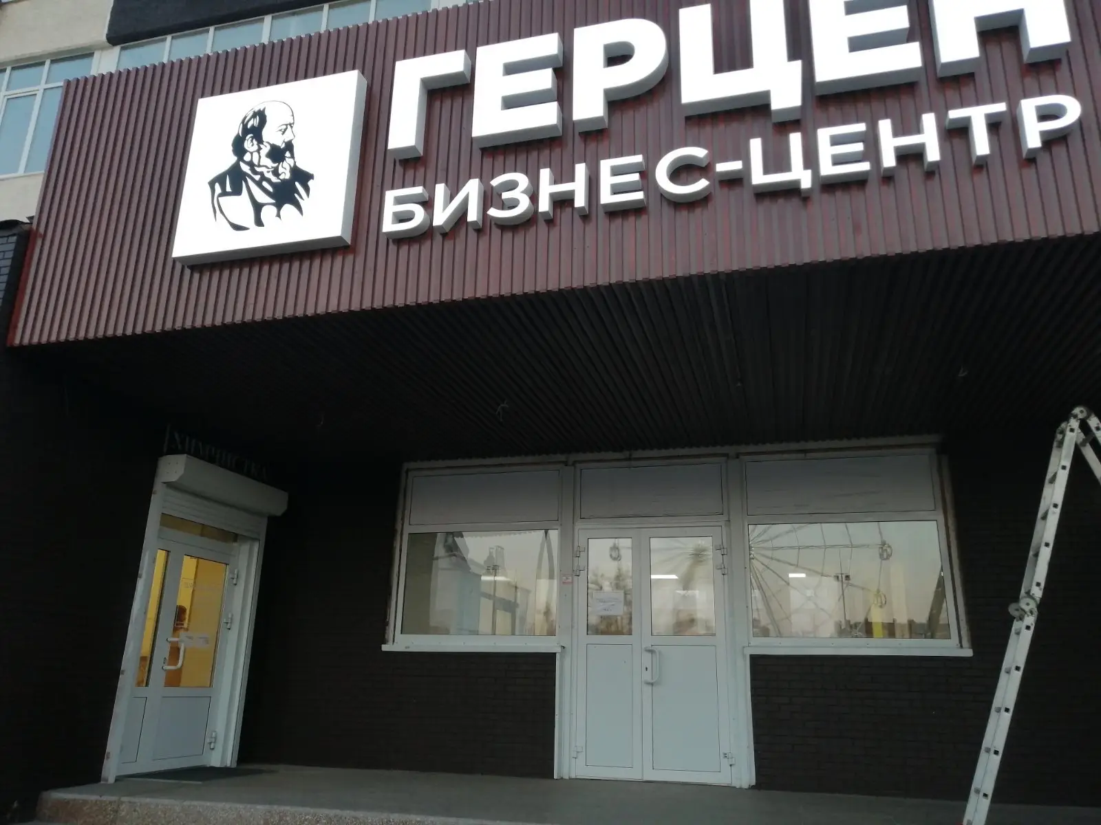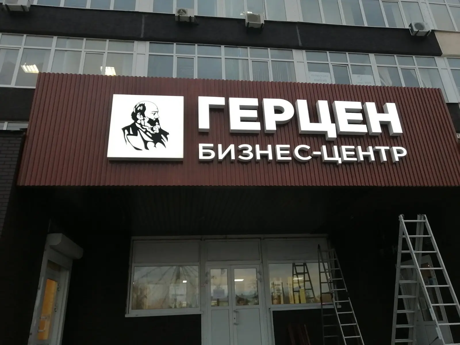 Объемные световые буквы из молочного акрила. Логотип - акриловый короб, аппликация из пленки.